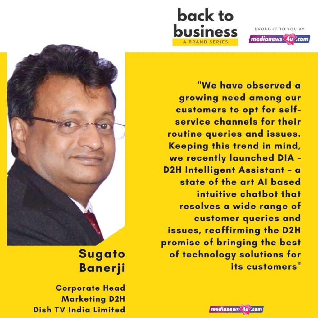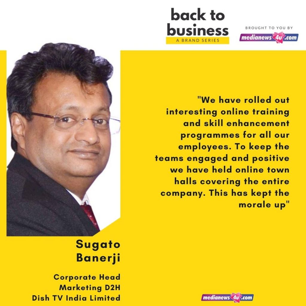 Sugato Banerji, Corporate Head – Marketing, D2H, Dish TV India Limited spoke to us in our series Back to Business and shared their plans of coming back to normalcy after the crisis.