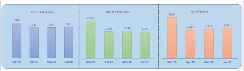 Total 24 categories and 550+ advertisers exclusively advertised in Jun’20 compared to Apr-May’20