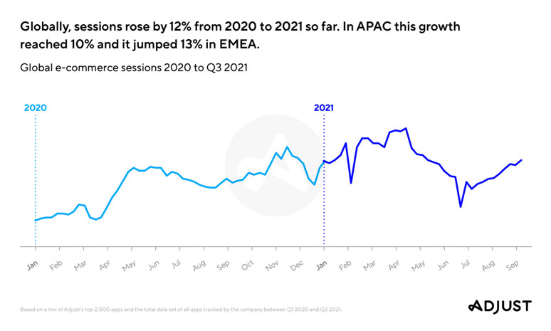 Additional key findings on global and regional growth and engagement in e-commerce apps in 2021 include: