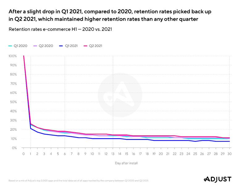 “Mobile has emerged as the leader in e-commerce,” said Paul H. Müller, co-founder and CEO of Adjust. “What’s most impressive is that e-commerce apps have managed to retain the users they’ve acquired while continuing to grow and acquire even more new customers. It’s a testament to mobile’s ability to provide convenient and user-optimized experiences. Retaining loyal customers will set brands up for continued growth throughout the holiday season, into the new year.”