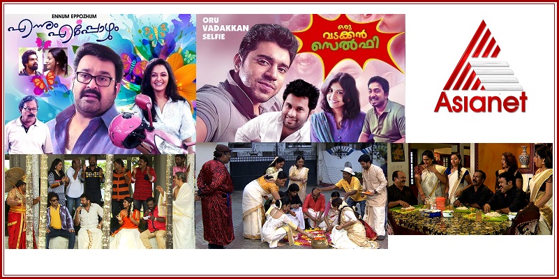 In addition to exclusive programmes with popular actors like Mohanlal, Mammootty, Nivin Pauly, Jayaram, Kavya Madhavan, Kunchacko Biban and Maniyan Pillai raju one of the major highlight is Asianet lines up Onam special programmes with eight movie premieres.