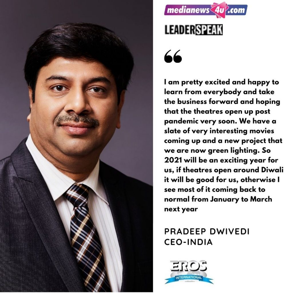 I am pretty excited and happy to learn from everybody and take the business forward and hoping that the theatres open up post-pandemic very soon. We have a slate of very interesting movies coming up and new projects that we are now green lighting. So 2021 will be an exciting year for us, if theatres open around Diwali it will be good for us, otherwise I see most of it coming back to normal from January to March next year.