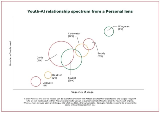 Gen Z has found an ally in AI, which shape-shifts into trusted confidants, creative collaborators, and relationship coaches. The five segments identified are:
