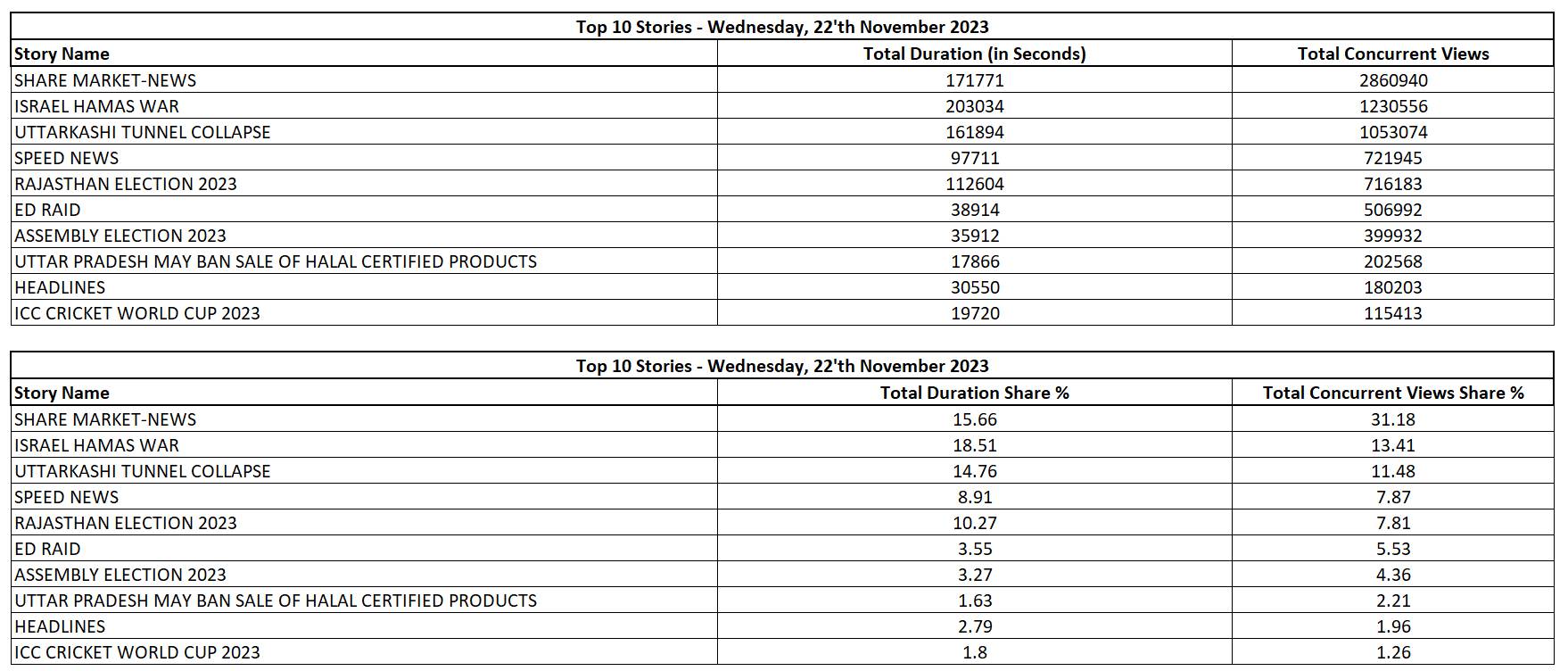 The total Story Duration or the Total Concurrent Views will not add up to 100% because the table above includes only the top 10 stories and not the entire universe of stories.