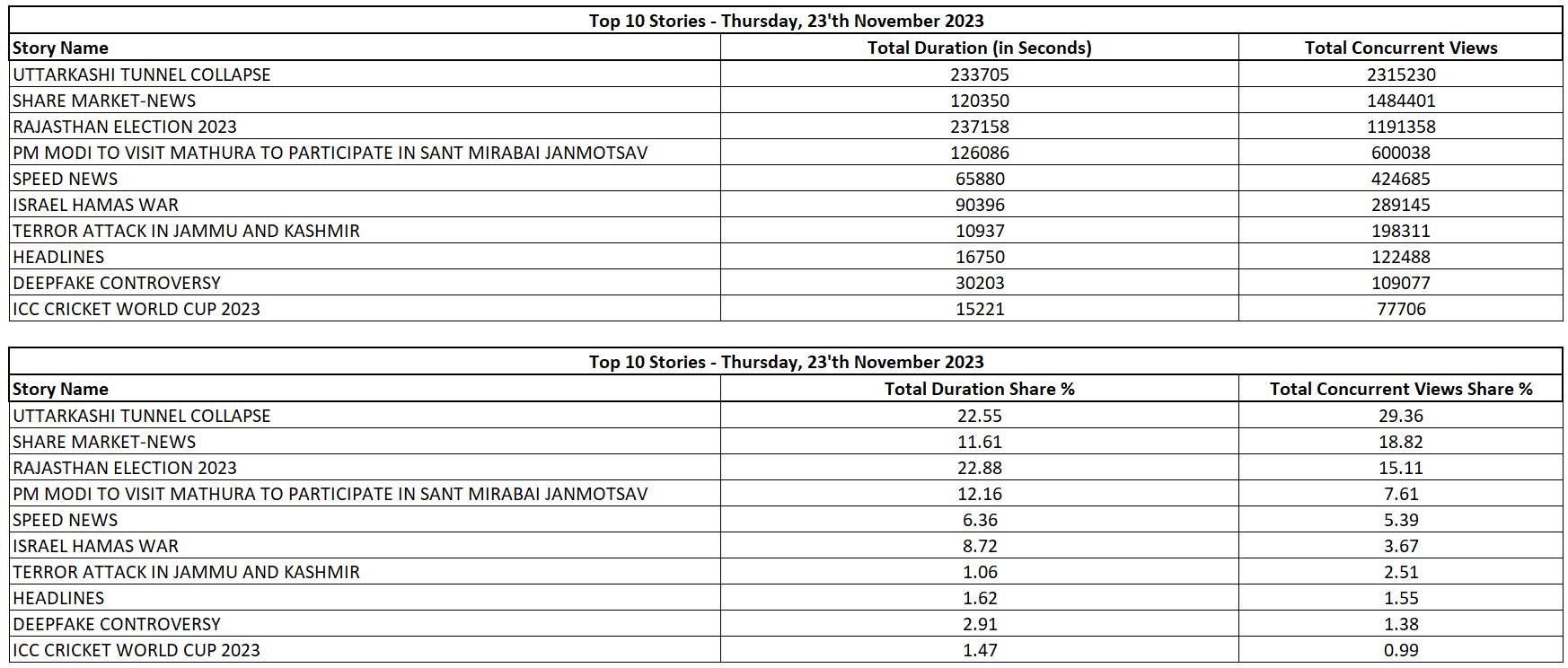 The total Story Duration or the Total Concurrent Views will not add up to 100% because the table above includes only the top 10 stories and not the entire universe of stories.