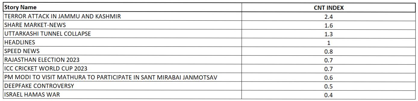 As per Chrome Digital Track (CNT), below are the biggest stories across the Hindi News Genre that went on air yesterday, by Duration and CNT Index.