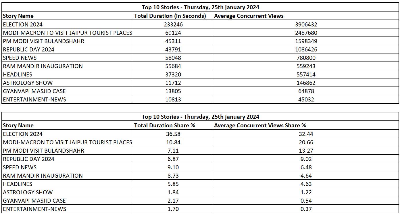 As per Chrome Digital Track (CNT), below are the biggest stories across the Hindi News Genre that went on air yesterday, by Duration and CNT Index.