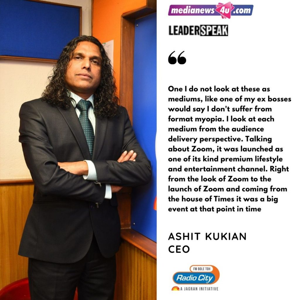 After 14 fruitful years, I moved into Radio. That was the time when Radio was expanding in both, its geographical reach, as well as its importance in media as far as brands were concerned. It came naturally, like I said when I moved from print to television, the portfolio I was handling at print was 10 times bigger. From Zoom when I moved to radio similarly, the revenue was more or less equivalent because it was just a 4 stations network then. I went on the journey of 4 to 7 to 11, to 20 with huge learnings and understanding the importance of local audiences that we are talking about. The reach that Radio created, was largely been set by the literacy challenge due to it being a massy medium which allows you to expand to the nooks and corners. From then to now in my second stint there has been a lot of learnings, a lot of exposures. Every day, every month or quarter there is something new happening and something new to do and learn. And I think that has kept me going. Like I said, close to 25 years and it feels like I have just joined media and I am still learning.