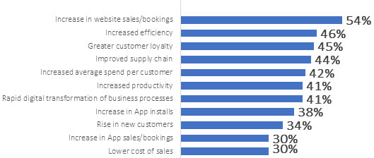 that Covid-19 has led to more website sales/bookings, indicating that driving online sales and visits will be a big emphasis for businesses moving forward. Budget for social, content marketing, paid video and advertising on retail websites and apps is also likely to increase in 2021. 4 out of 10 marketers say Covid-19 has resulted in rapid digital transformation of business processes. Further 46% claimed they had seen increased efficiency and 45% confirmed increased customer loyalty.