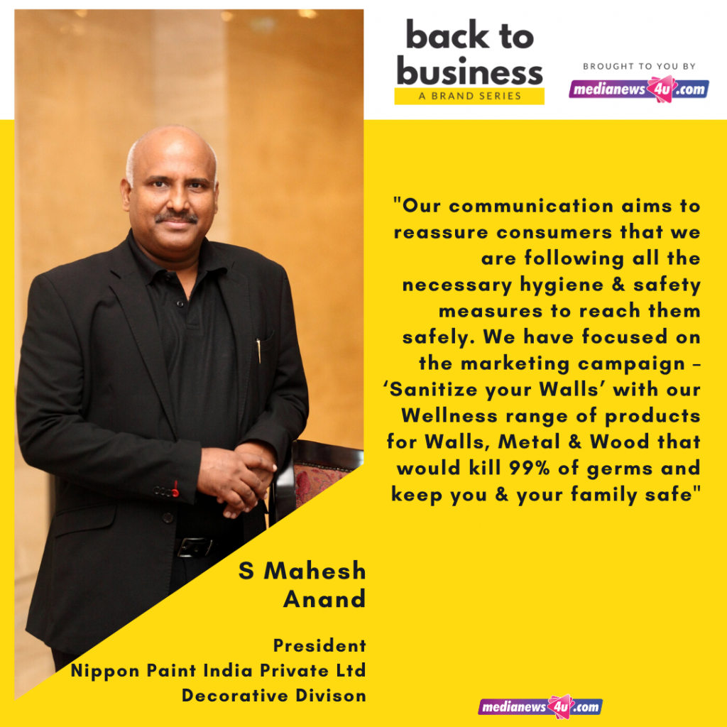In this story of Medianews4u’s super successful brand series, Back to Business, we spoke to S Mahesh Anand, President – Nippon Paint (India) Private Limited (Decorative Division) and President of the Indian Paint Association (IPA)