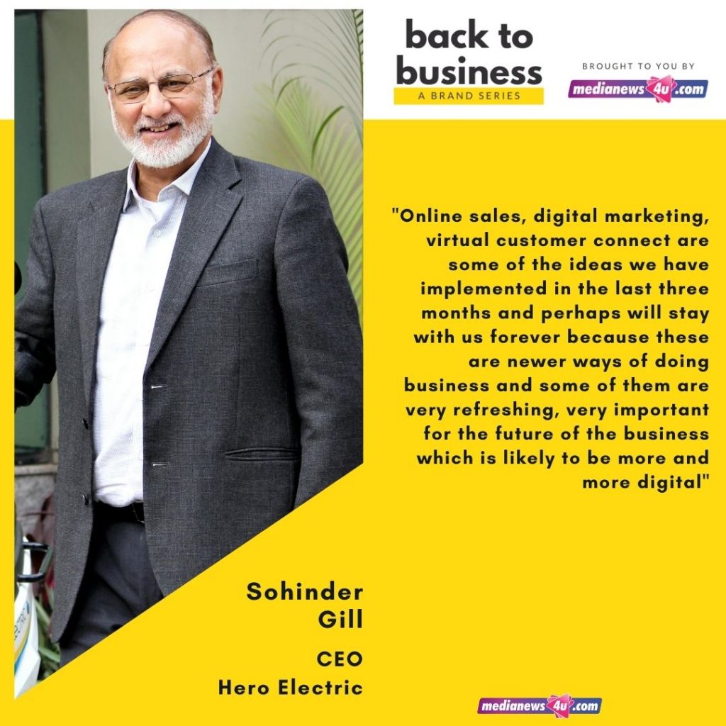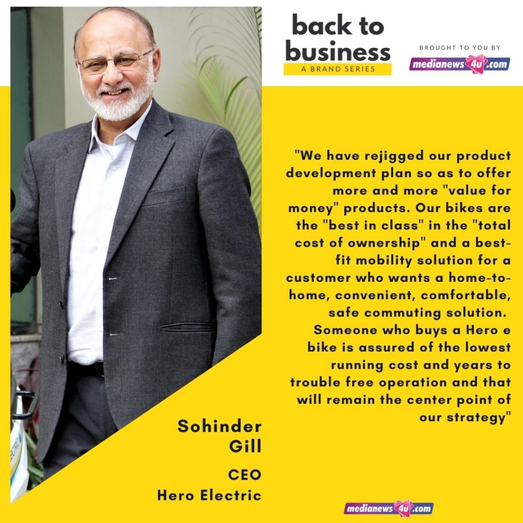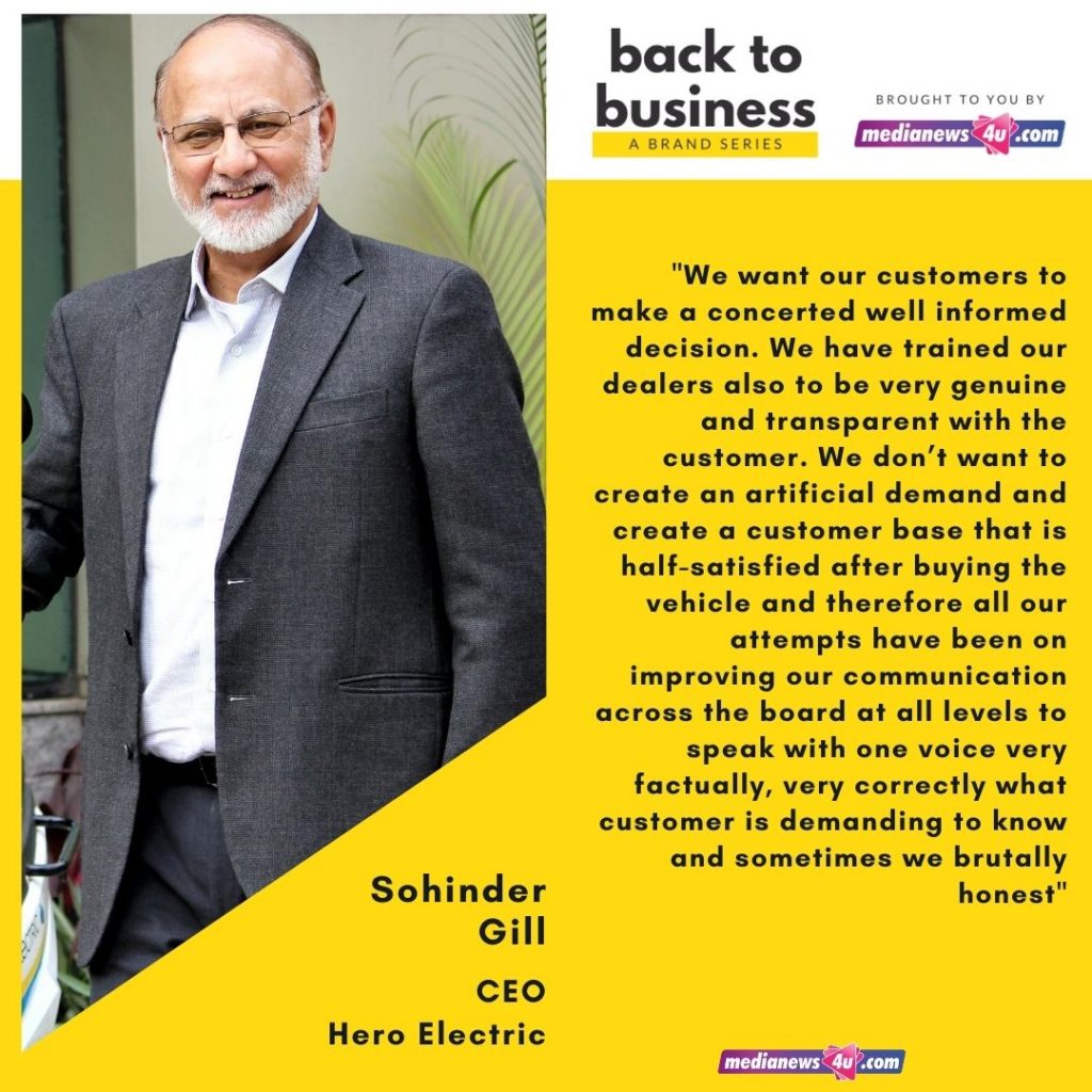 In this story of Medianews4u’s new brand series, Back to Business, we spoke to Sohinder Gill, CEO, Hero Electric.