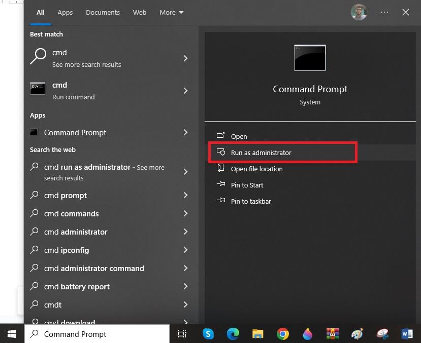 Step 3: Go to the Start menu, type “cmd,” and open it as Administrator, as shown below.