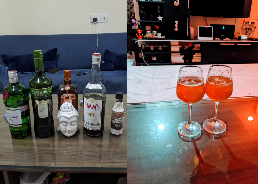 I’m also brushing up on my bartending skills. I used to write tons of articles on the subject and used to host several cocktail parties at my earlier house. While, the house parties never stopped, I did reduce creating cocktails. But, I’m back now. Relearnt some and created some new ones as well. Here is a pic of one of them:
