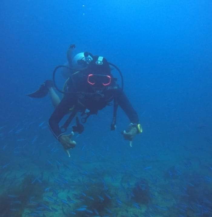 She has done PADI Open Water – Barefoot Scuba in Andaman (Havelock); PADI Advanced Open Water – Temple Adventures in Puducherry; PADI Rescue Diver in Malapascua, Philippines; PADI Wreck Specialty – Coron Palawan in Phillipines; PADI Nitrox Diver from Sri Lanka; PADI Digital Underwater Photography from Maldives; PADI Underwater Naturalist & PADI Deep Diver from Pondicherry; and has fun dived in Bali, Thailand and Dubai.