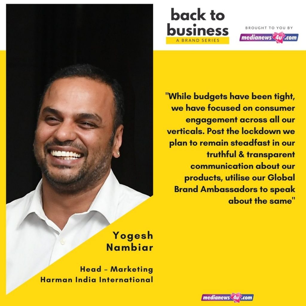 In this story of Medianews4u’s new series, Back to Business, we spoke to Yogesh Nambiar – Head – Marketing, Harman India International Pvt. Ltd
