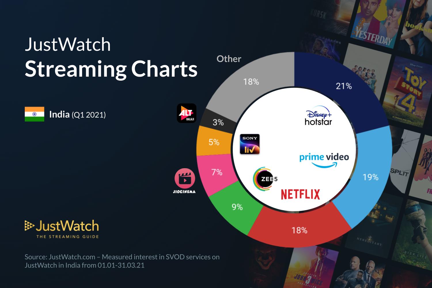 The streaming giants Netflix and local player Zee5 managed to get 12 pc and 10 pc share respectively. The smaller local players like Voot, Sony Liv, Jio Cinema and AltBalaji combined together managed 17 pc share.