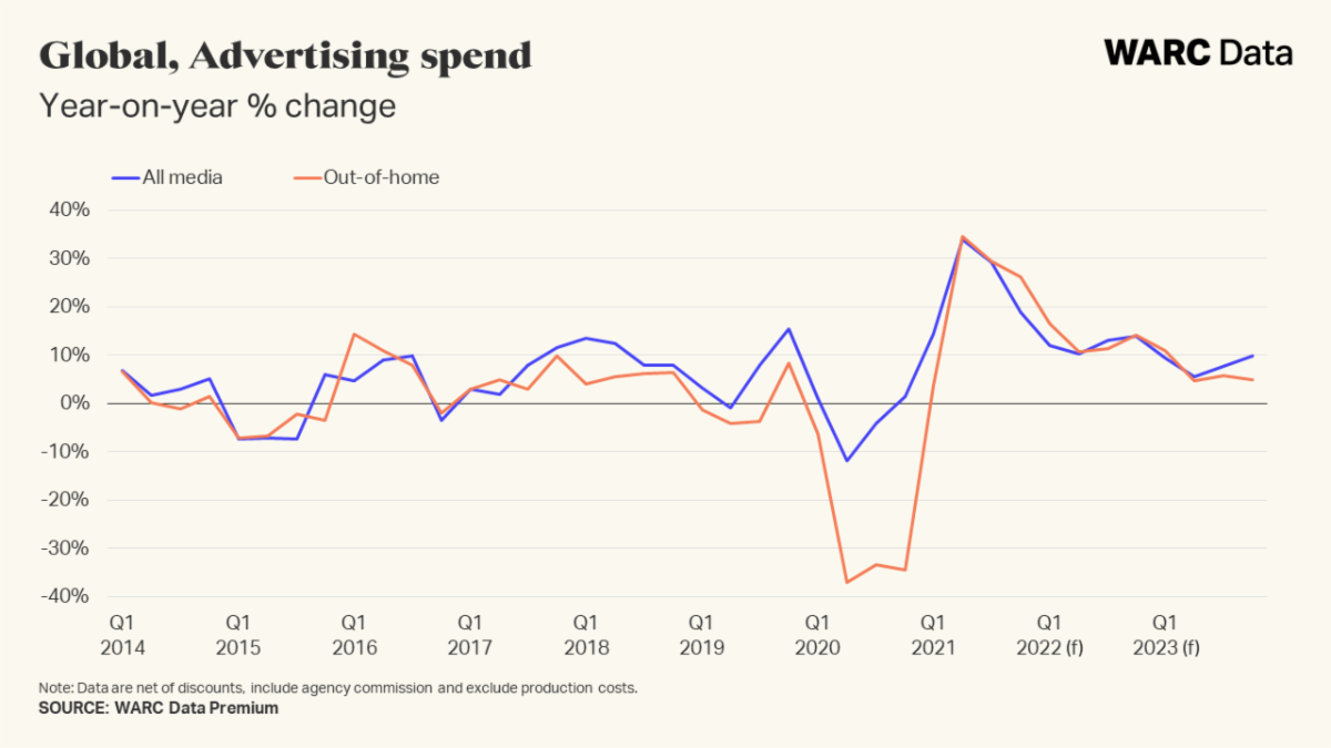 Worldwide OOH ad investment to increase 16.5% year-on-year in Q1 2022