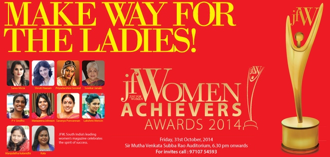 Chennai : JFW, South India’s leading women’s magazine, is all set to host the 7th edition of its Women Achievers’ Awards for the year 2014 on October 31, 2014 at Sir Mutha Venkata Subbarao Hall in Chennai.