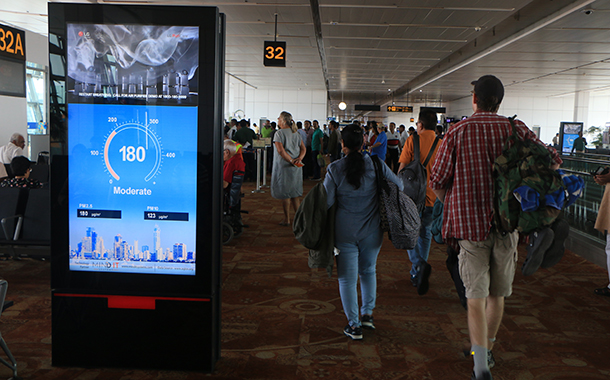 Laqshya Media installs a plethora over 312 digital screens at all terminals of Delhi. The LG Air Purifier commercial was displayed in the digital screens where the commercial used 1/3rd of the space whereas the rest of the space is utilized to display Live Air Quality Index (AQI). Laqshya’s scope of work also comprised of displaying the product placement and branding in premium plaza lounges; out of which 2 of them were displayed in Bangalore and 4 of it in Delhi. With a well-planned thought, the product is strategically displayed at the food joints and near smoking rooms at Delhi Airports which includes 9 units at Terminal3.