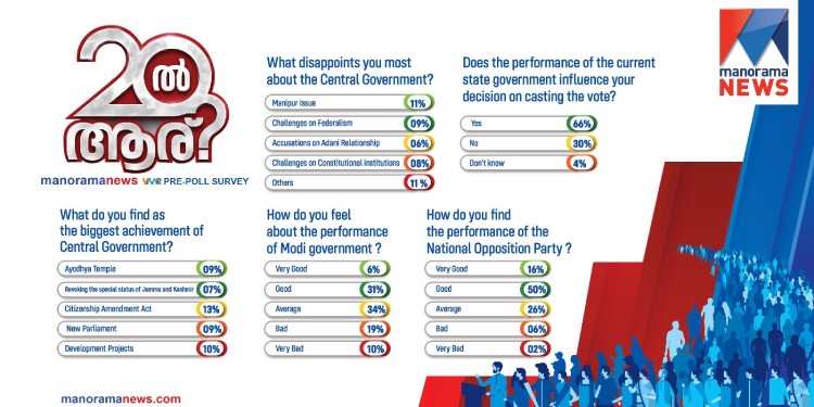 In a noteworthy step towards gauging the sentiments of Kerala voters, Manorama News initiated an innovative collaboration with Voter’s Mood Research for an expansive pre-election survey preceding the 2024 Lok Sabha Elections. This survey, titled ’20th il Aaru?’, stands as the most extensive of its kind in Kerala, involving a massive sample size of 28,000 voters who each participated in thorough face-to-face interviews. The endeavour aims to comprehensively capture the intricate nuances of the prevailing political landscape.