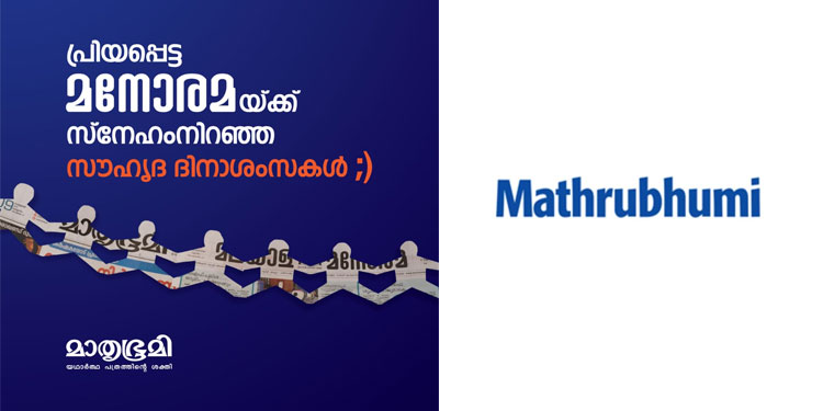 This Friendship Day, Kerala’s formidable media conglomerate Mathrubhumi wished Malaya Manorama a very happy friendship day on its front page. The daily creative says, “It’s time we set a new benchmark to our friendship goals, for we work towards the same goal, Happy friendship Day”. This first of its kind initiative, an unusual bonhomie by Mathrubhumi, celebrates a healthy competition which both Kerala’s most prominent media conglomerates compete for.