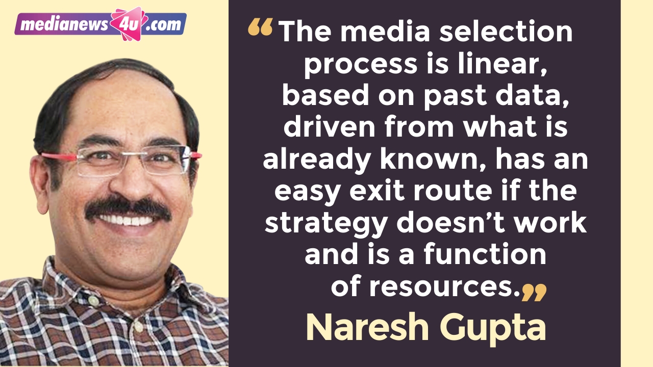 The media selection process is linear, based on past data, driven from what is already known, has an easy exit route if the strategy doesn’t work and is a function of resources.