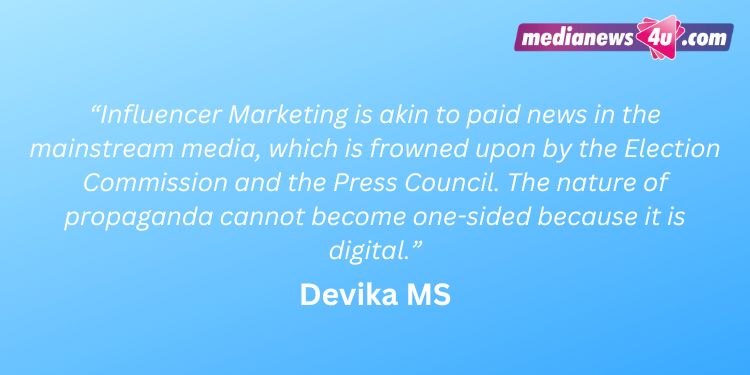 Political parties and aspiring candidates hire online influencers, even if it is not directly paid engagements. It is necessary to check such practices as they have no exposure to question or scrutinise the party spokesperson or candidates about the lofty claims. Influencer marketing must be included in the Model Code of Conduct by the Election Commission. It is akin to paid news in the mainstream media, which is frowned upon by the Election Commission and the Press Council. The nature of propaganda cannot become one-sided because it is digital. The Election Commission must amend the Model code of conduct to be in tune with the times. Genuine campaigns and advocacy over the internet must be made accountable, and the same must be treated on par with that of advertisements in the mainstream media, making pre-certification mandatory. Similarly, fake claims, false propaganda, etc., must be penalised.