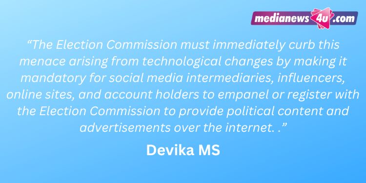 The Election Commission must immediately curb this menace arising from technological changes by making it mandatory for social media intermediaries, influencers, online sites, and account holders to empanel or register with the Election Commission to provide political content and advertisements over the internet. Those who are not empanelled or registered with the ECI cannot upload political content and advertisements. Pre-certification rules applicable to newspapers must be made mandatory for digital.