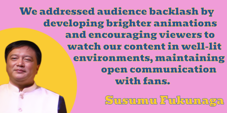Regarding the specific issue of content that affected children, we experienced a notable incident early on when viewers reported negative effects from the animation style. We recognized that the intense focus on the screen during animation was impacting kids, prompting us to make significant changes. In response, we developed brighter animations and encouraged viewers to watch in well-lit environments. This proactive approach helped us overcome that challenge while maintaining open communication with our fans, who expressed eagerness to see the broadcast resume.