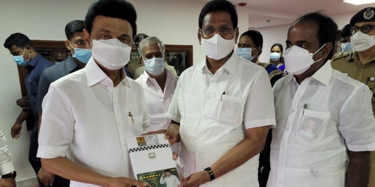 In a ceremony held at the Nehru Indoor Stadium, Chennai, the founder of Ramraj Cotton, K. R. Nagarajan presented the ‘Chess Olympiad Thambi Vetti’ to the Hon’ble Chief Minister of Tamil Nadu, M. K. Stalin. The Thambi Vetti is to be launched by the actor Padmashri Jayaram at the press meet.