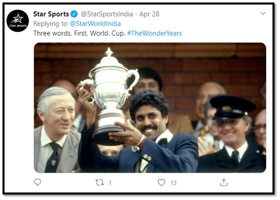 And what followed was responses from the pioneers of Indian TV among other leading brands.Star Sports called out the good old days when India won its first Cricket World Cup!