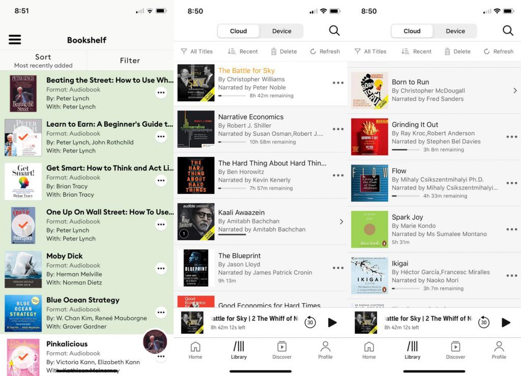 My bookshelf from Audible & Storytel (the two apps) which I follow for audiobooks