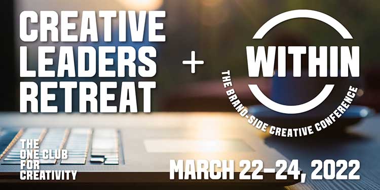 International: The One Club for Creativity has combined two of its popular professional development offerings as Creative Leaders Retreat + WITHIN: The Path Forward, a new synergistic virtual conference on March 22-24, 2022 for both agency and brand-side creatives.
