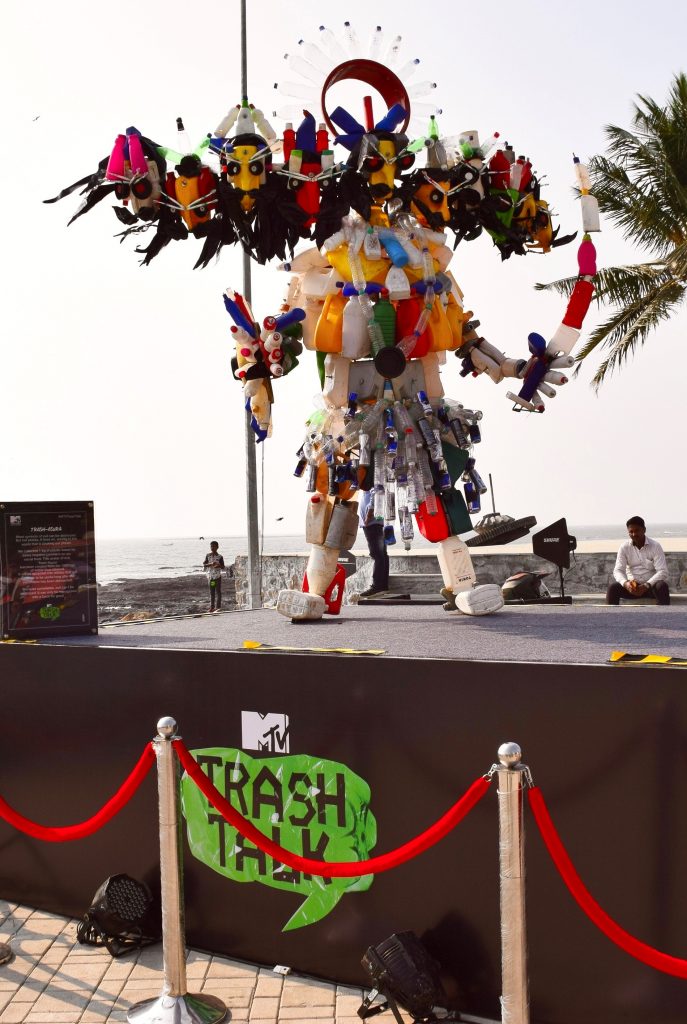 For this initiative, MTV partnered with renowned artist and sculptor Arzaan Khambatta, to design a model of the modern day RAVANA, named TrashAsura, a 10-ft tall structure symbolizing plastic as the evil in the face of humanity. The installation, made entirely of plastic waste, is a physical and a creative manifestation of the filth received in the form of social media trolls. TrashAsura, made from the 1000kg ofwaste that was collected, will later by upcycled into utilities after the installation will be dismantled on the 9thof October.
