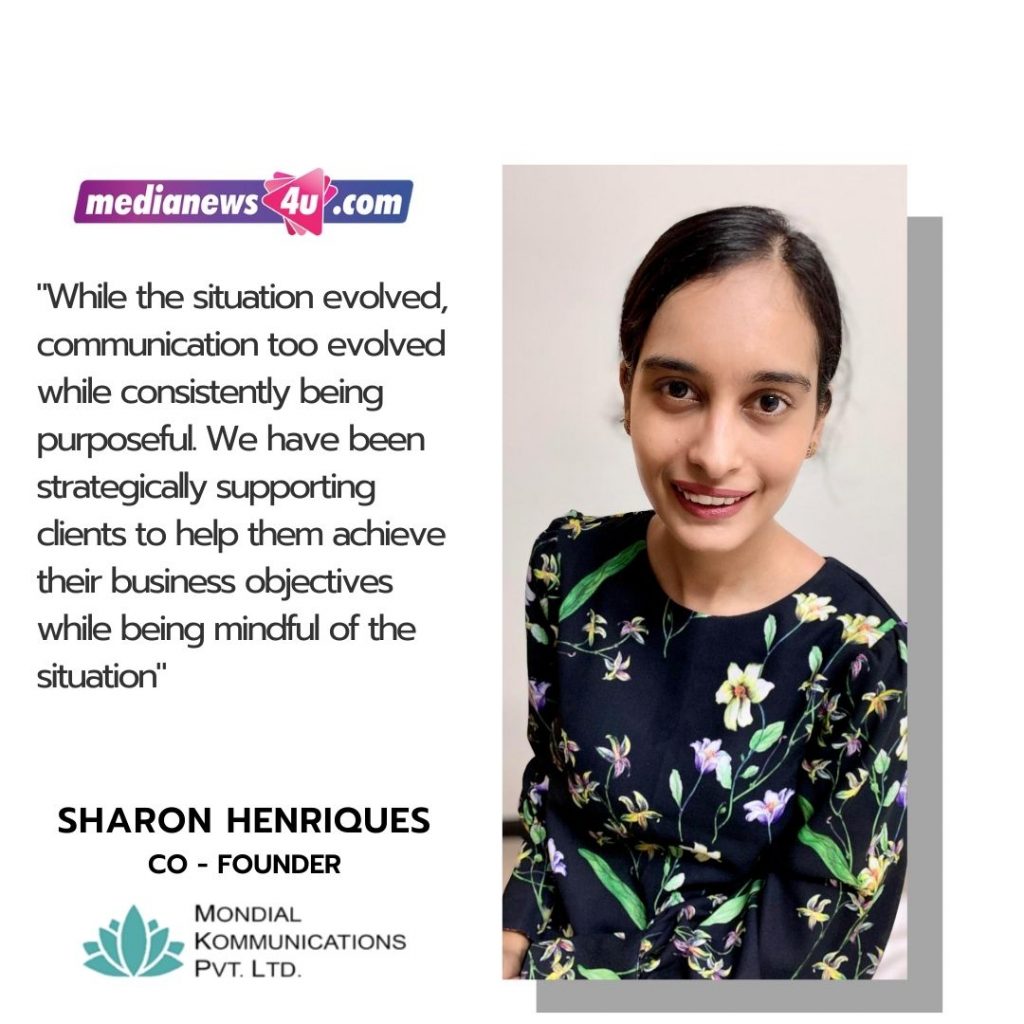 Sharon: The objective will always remain to maintain a positive disposition towards the brand and its offering.  Communication during this lockdown had initially been focussed on creating awareness about COVID-19 since the situation was developing.  While the situation evolved, communication too evolved while consistently being purposeful. We have been strategically supporting clients to help them achieve their business objectives while being mindful of the situation.  We have ensured our clients are present at the right forums, virtual conferences while helping them curate events of their own. We have leveraged the reach of owned media during this period considering media houses are also focussed on COVID-19 related communication. There have been several challenges over the past three months, however, our teams have been collaborating and brainstorming to come up with solutions that have been practical and in-line with the objective that we set out to achieve.