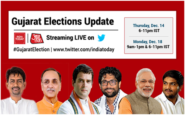 The live streaming of the Gujarat Election on Twitter is developed in collaboration with India Today and AajTak as part of Twitter’s continuous efforts in taking Digital India to newer heights.