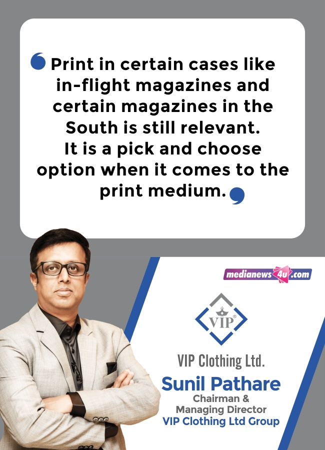 “Print in certain cases like in-flight magazines and certain magazines in the South is still relevant. It is a pick and choose option when it comes to the print medium. We will be moving more towards digital marketing for all the product categories. The company will be spending on OOH as well. TV is not on the cards. We are in the process of fundraising. Once it is completed, we will plan activities around that medium. Our spends will be skewed towards digital followed by OOH, and then print,” Pathare elaborated.