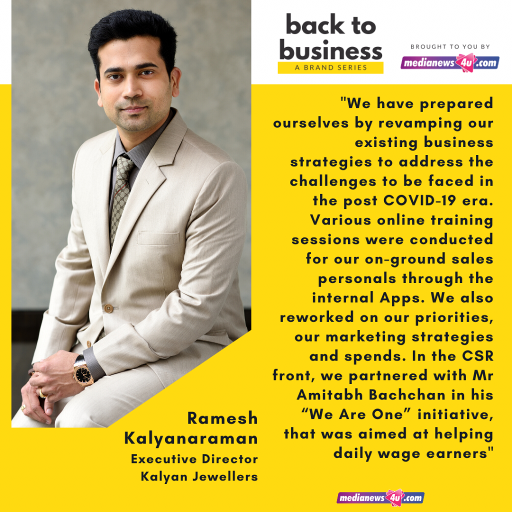 In this story of Medianews4u’s new brand series, Back to Business, we spoke to Ramesh Kalyanaraman, Executive Director – Kalyan Jewellers on how they are getting back to business.