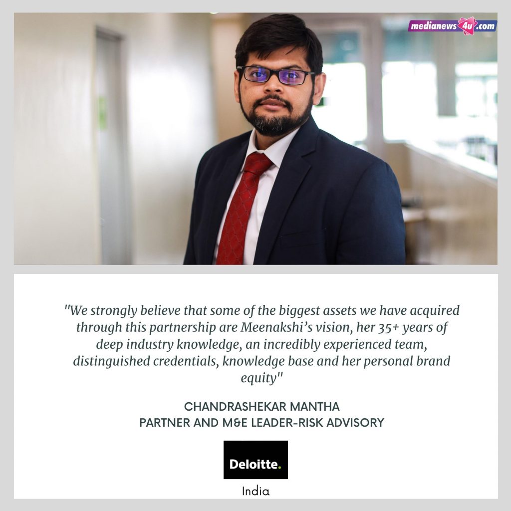 We strongly believe that some of the biggest assets we have acquired through this partnership are Meenakshi’s vision, her 35+ years of deep industry knowledge, an incredibly experienced team, distinguished credentials, knowledge base and her personal brand equity. We share a common vision, purpose and mission, which is critical for any partnership. Deloitte’s ability to access the wider network capabilities, technology impetus and global reach makes it a unique combination that can re-define the future of marketing and advertising spends advisory space.