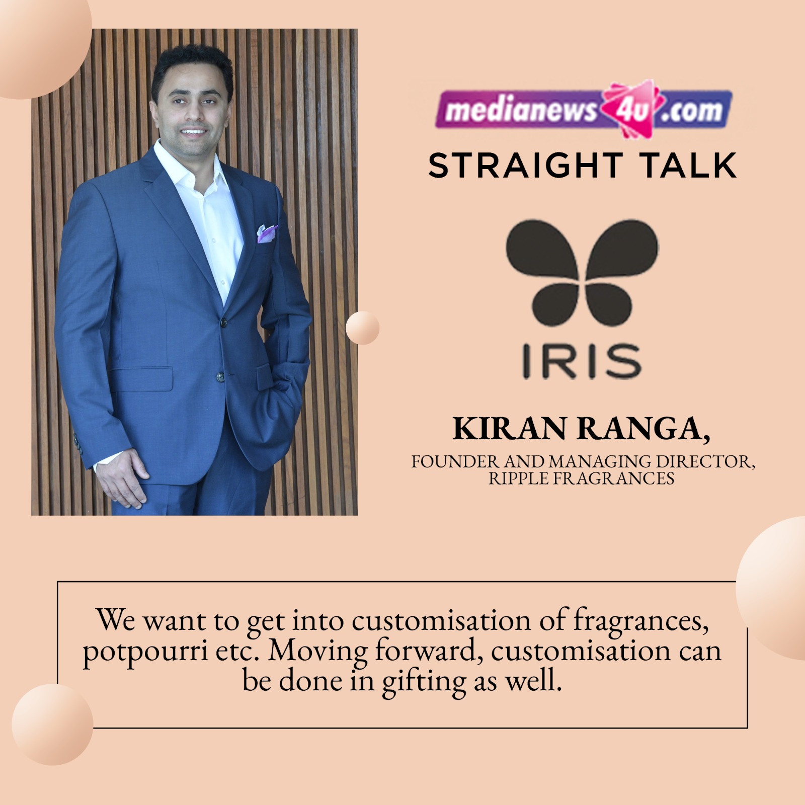 “One of the key competences of Ripple Fragrances is that we create our own fragrances,” underlines Ranga, in a conversation with Medianews4u.com.