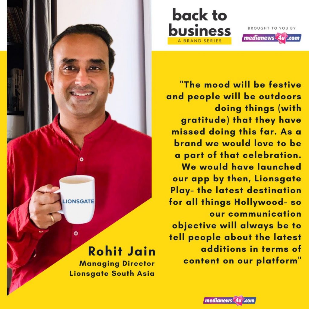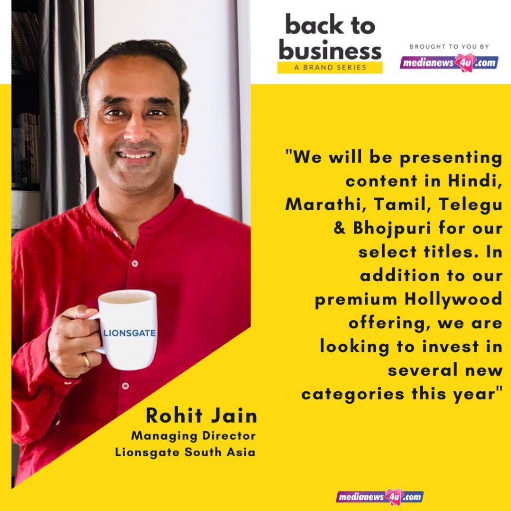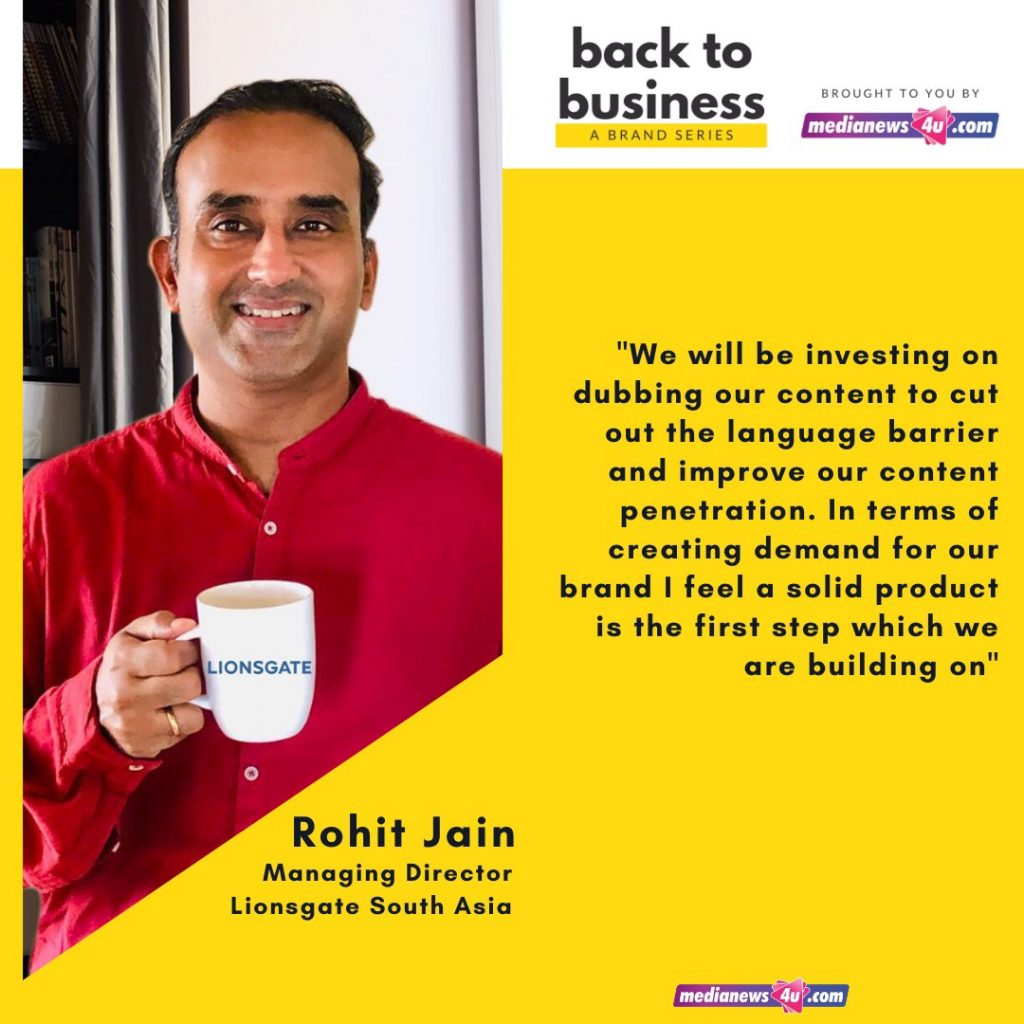 In the this story of Medianews4u’s new brand series, Back to Business, we spoke to Rohit Jain, Managing Director, Lionsgate South Asia.