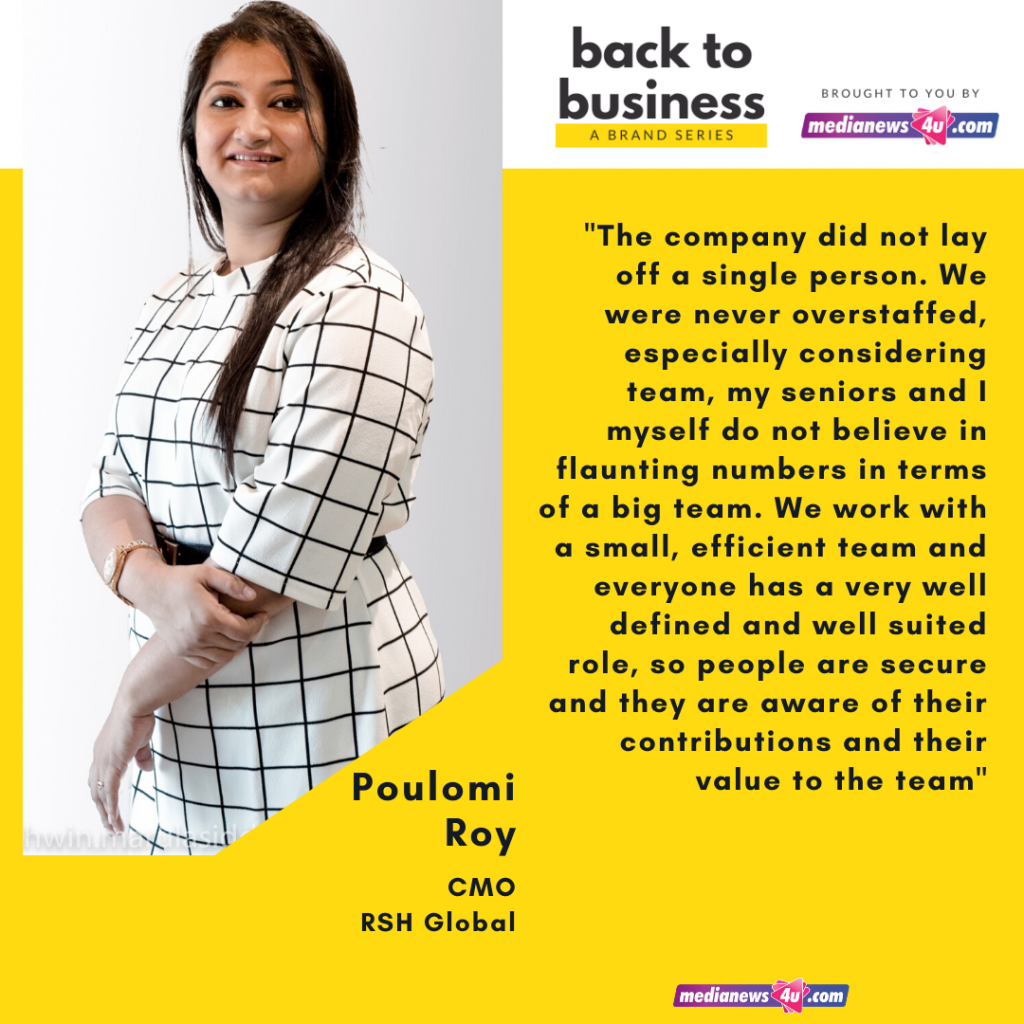 In this story of Medianews4u’s super successful brand series, Back to Business, we spoke to Poulomi Roy, CMO, RSH Global.