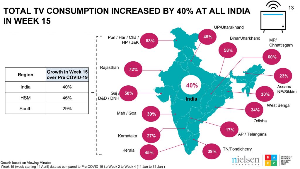The 5th edition of BARC and Nielsen’s report titled Crisis Consumption: An Insight Series into TV, Smartphones and audiences show the difference in consumption patterns of consumers from the Pre-COVID period (11th April’20 to 17th April’20) and during-COVID period (11th April’20 to 17th April’20).