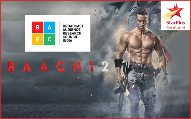 According to the BARC data for week 24, the world television premiere of the action thriller Baaghi 2 telecast on 10th of June at 1.00pm on Star Plus has boosted up the slot viewership by 10X.